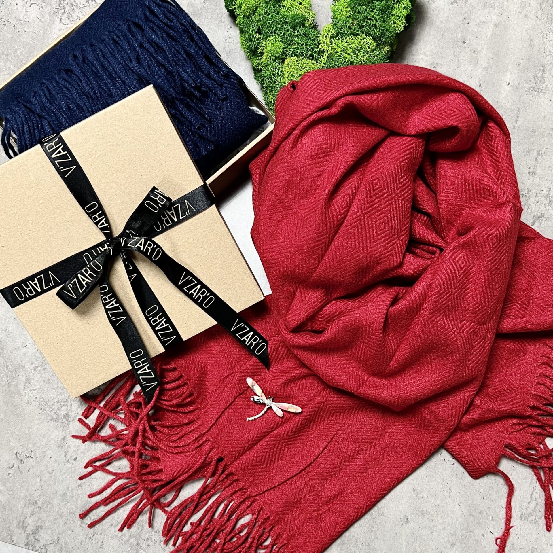 Перфектен подарък – шал, в съчетание с красива брошка.